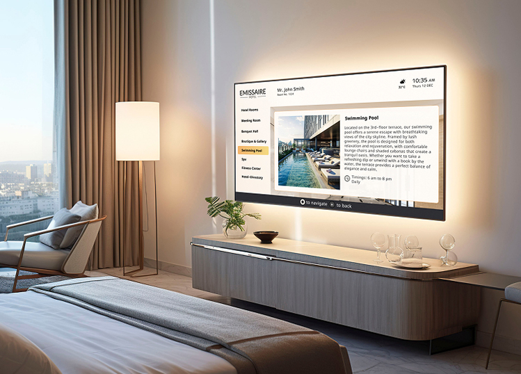 Beyond your convational TV: an interactive hub for services, entertainment and guest engagement.